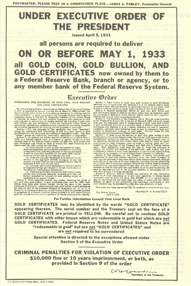 Por qué EEUU expropió el oro de sus ciudadanos