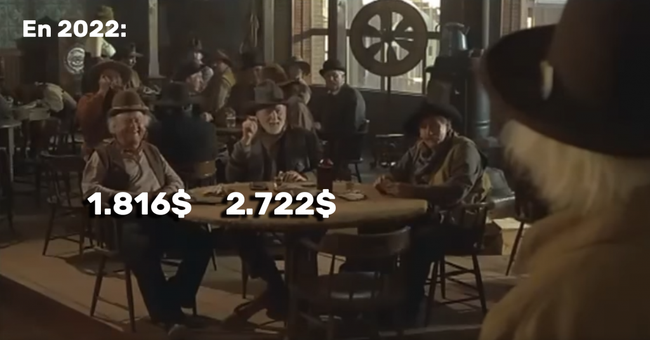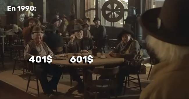 Revisitando la triología de Regreso al Futuro me he quedado con un detalle que me ha hecho reflexionar: 1/ Antes del duelo a muerte entre Marty y Tannen se hacen 2 apuestas de 20 y 30 dólares en oro 🪙