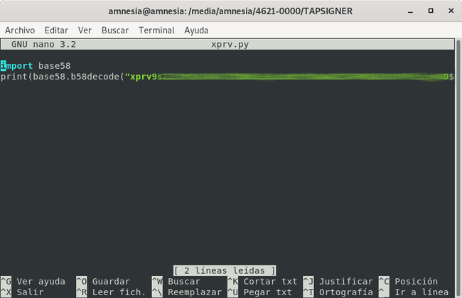 OPCIONAL: archivo Python con pequeño script para descodificar el xprv