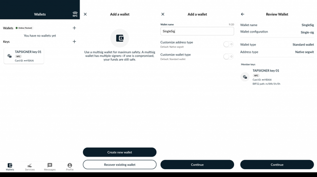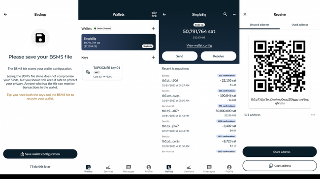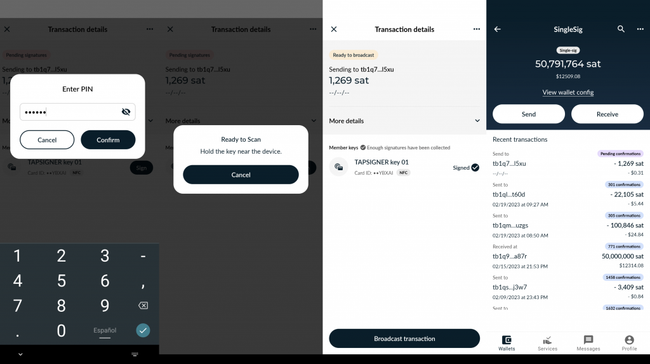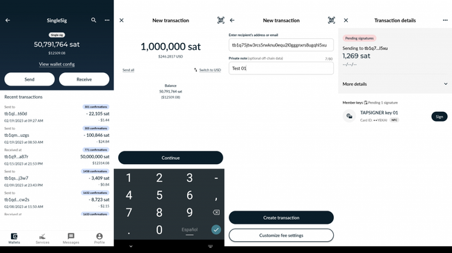 Operar con TAPSIGNER es también muy cómodo y hace que sea una candidata ideal a "primera wallet fría" que recomendaría a alguien que empieza y que quiere subir el nivel de seguridad de sus bitcoins sin apenas complicaciones; ese tipo de personas que quizá todavía no están preparadas para una hardware wallet convencional (personas 0 técnicas, padres, abuelos) pero que no quieren renunciar a la seguridad de tener sus claves privadas en un dispositivo sin internet.
