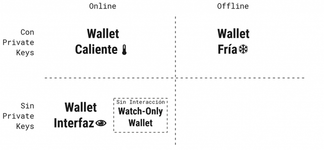 Esta distinción busca separar wallets cuyas claves privadas tienen más riesgo de ataque online/remoto de las que no.