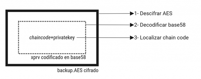 Vamos a descifrar el archivo AES del backup y decodificarlo para encontrar el chain code.