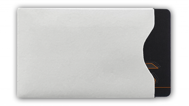 Parece una simple cartulina blanca plastificada — como las de las cajas de cartón de las pastelerías — para protegerla de arañazos, pero en verdad es una funda protectora de radio frecuencia (RF) que sirve para de prevenir accesos no deseados de lectores con malas intenciones (como la tarjeta no tiene toda la lógica de una Hardware Wallet y no puedes activar o desactivar el NFC como si lo harías en una ColdCard). La tarjeta reacciona a todo lector que se le acerque y por ello es importante guardarla siempre dentro de la funda.