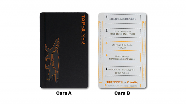 La BACKUPKEY de nuestra TAPSIGNER (punto 5 de la Cara B)